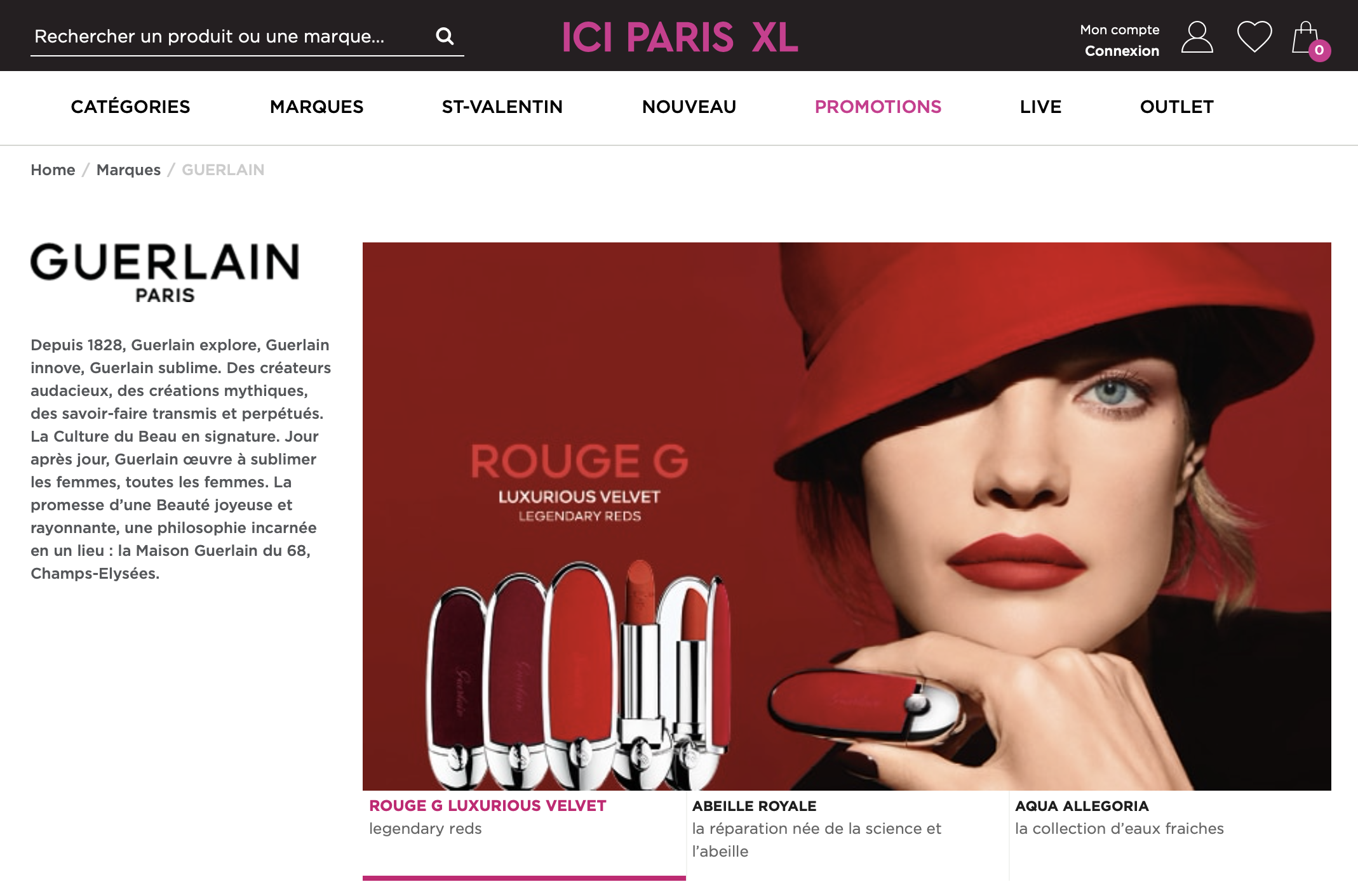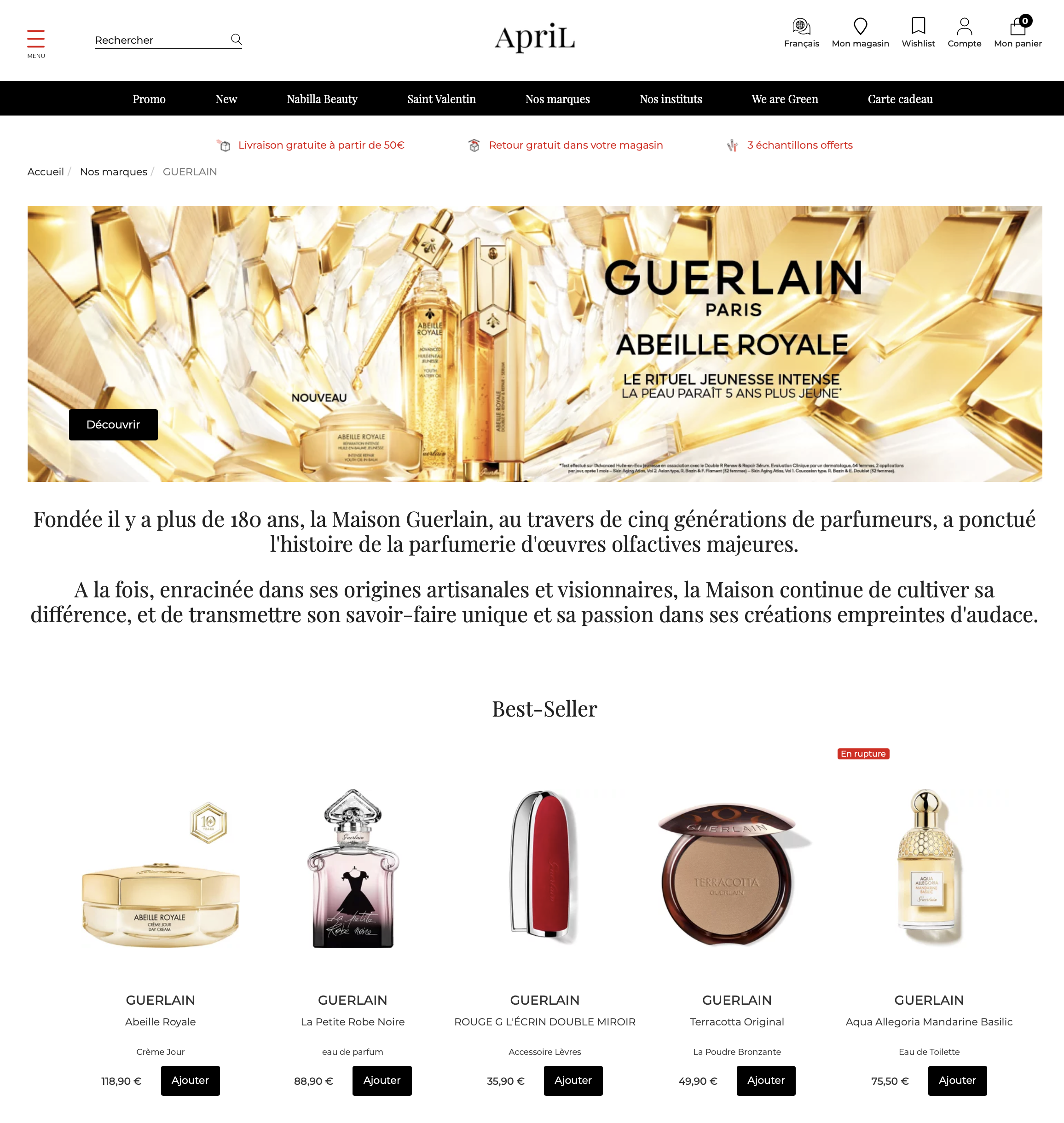 Depuis 1828, Guerlain explore, Guerlain innove, Guerlain sublime. En parfum, en soin, en maquillage. Des créateurs audacieux, des créations mythiques, des savoir-faire intemporels. La Nature et l’Art comme sources d’inspiration. La Culture du Beau en signature. Une histoire d’audace créative et de transmission.