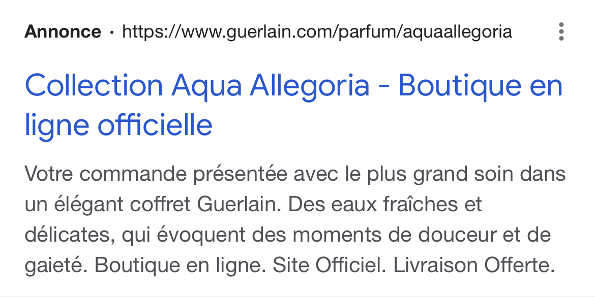 • SEA : Développement et implémentation des annonces Google Search afin de maximiser la visibilité de Guerlain sur le moteur de recherche.