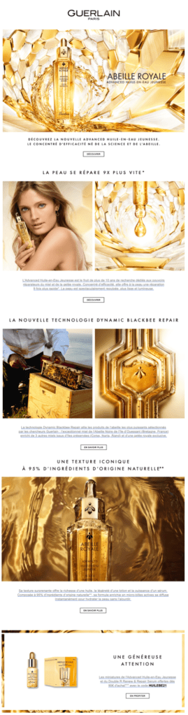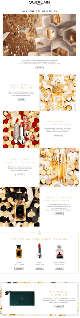 • CRM : Préparation et routage des différents emailings selon le calendrier éditorial, en lien avec l’agence CRM. Traduction des textes (FR/NL), adaptation des templates selon les spécificités du marché Belux, indication des pages de redirection sur le Guerlain.com.be et tracking des liens pour intégration HTML et routage par l’agence.