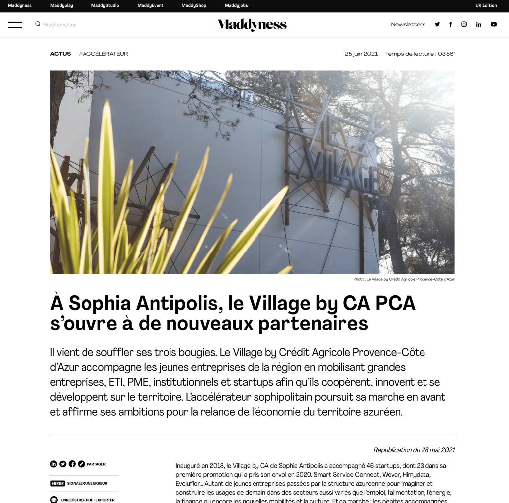Côté presse, une de nos propositions était le développement d’un article avec Maddyness. L’article est paru sur le site de Maddyness en Juin 2021, et a été relayé dans leur newsletter ainsi que sur leurs réseaux sociaux.
